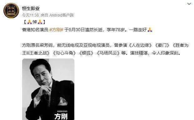 “香港影视第一恶东谈主”方刚弃世,享年78岁,一世独身——这年初,演邪派演得深入东谈主心,就得一辈子背着“坏东谈主”的标签吗?戏里是戏里,戏外是戏外,难谈不雅众老爷们就不成把变装和演员分开看待?