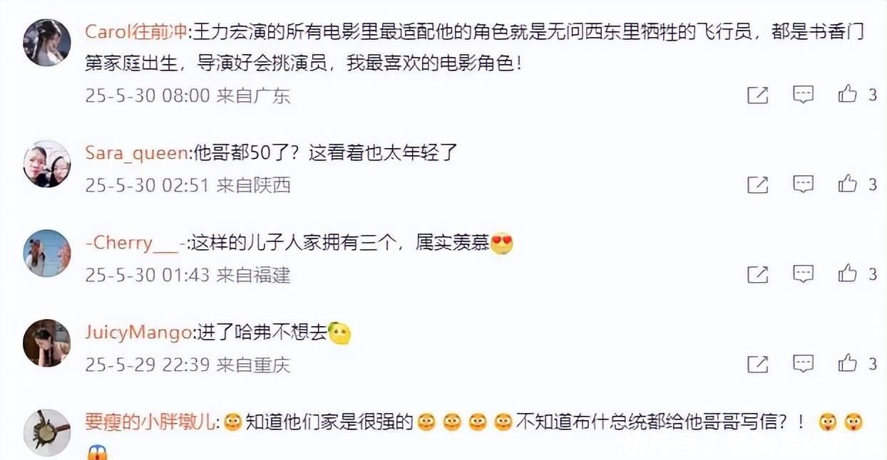 网友纷纷投来爱戴的观念:“好爱戴王姆妈,这样优秀的女儿,她尽然同期领有3个。”