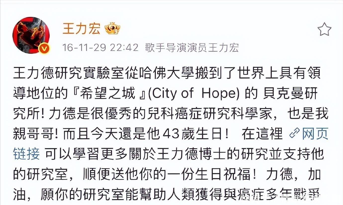王力宏在酬酢平台上点赞了我方的哥哥王力德新濠天地澳门网站,这一瞥为冲上了热搜,话题是:王力宏的哥哥王力德血癌科研。