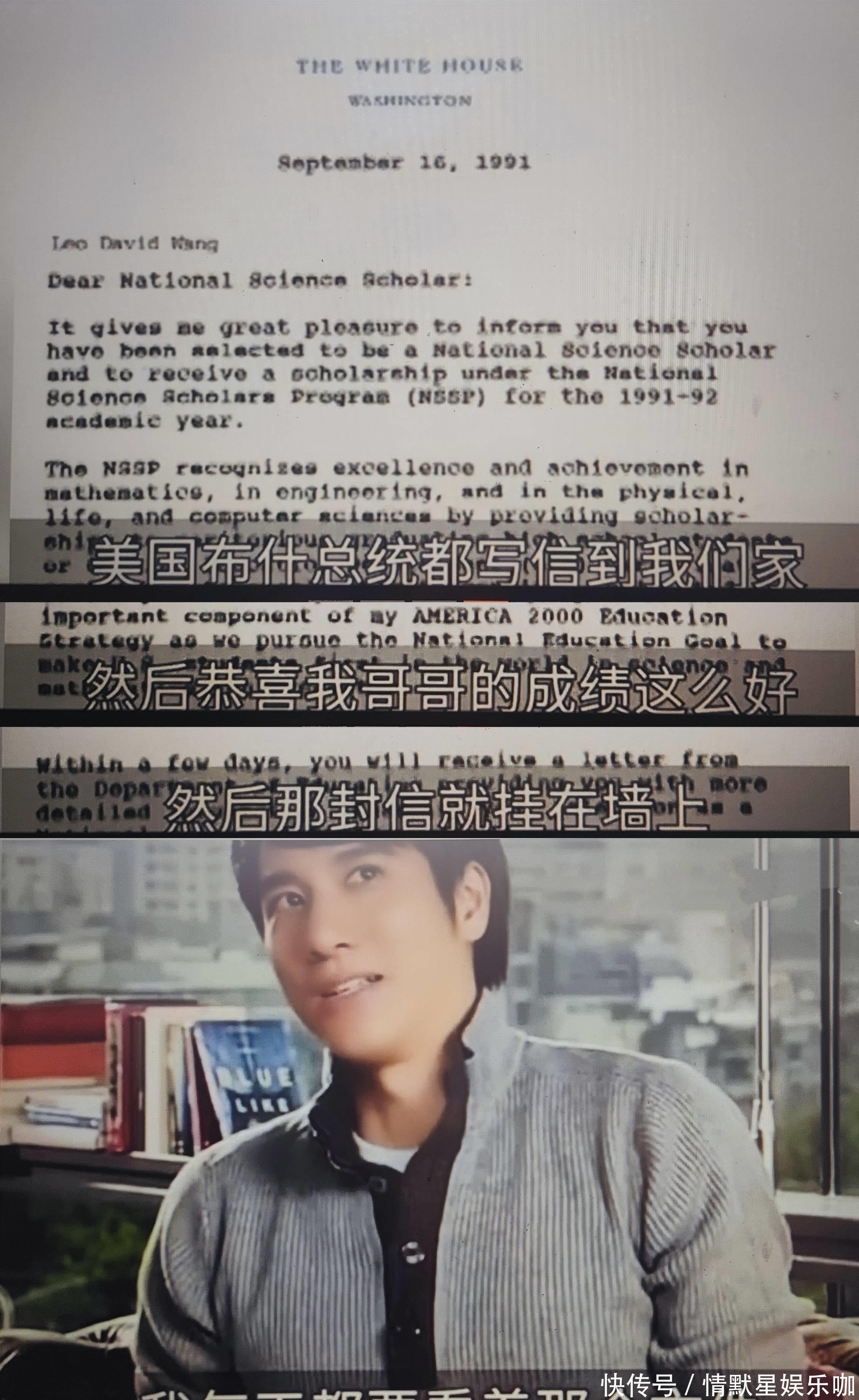 哥哥王力德是耶鲁大学学士、芝加哥大学医学博士。好意思国布什总统皆写信到王力宏家,恭喜哥哥的收成这样好,那封信就挂在墙上,王力宏每天就要看到这封信,压力很大。