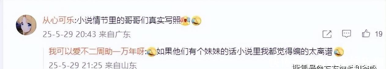 还有吐槽的:“演义情节里哥哥们的信得过写真。要再有个妹妹,是演义皆会以为编得太离谱了!”